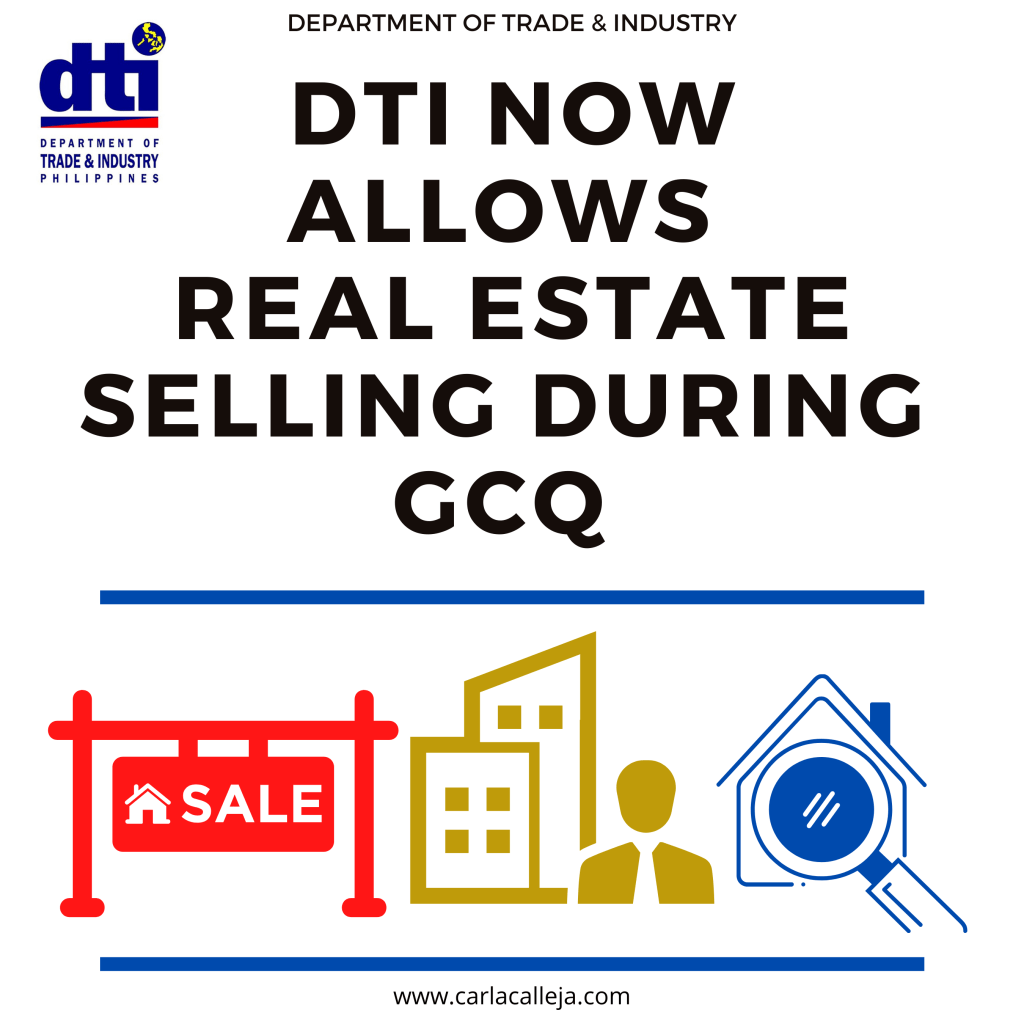 In response to the plea of the Real Estate Organizations (NREA and REBAP) in the Philippines, the Department of Trade and Industry gave a go signal for the Realty Sector to resume selling & buying properties ones the Enhanced Community Quarantine is softened to General Community Quarantine (GCQ) which is expected to take effect after May 15, 2020.