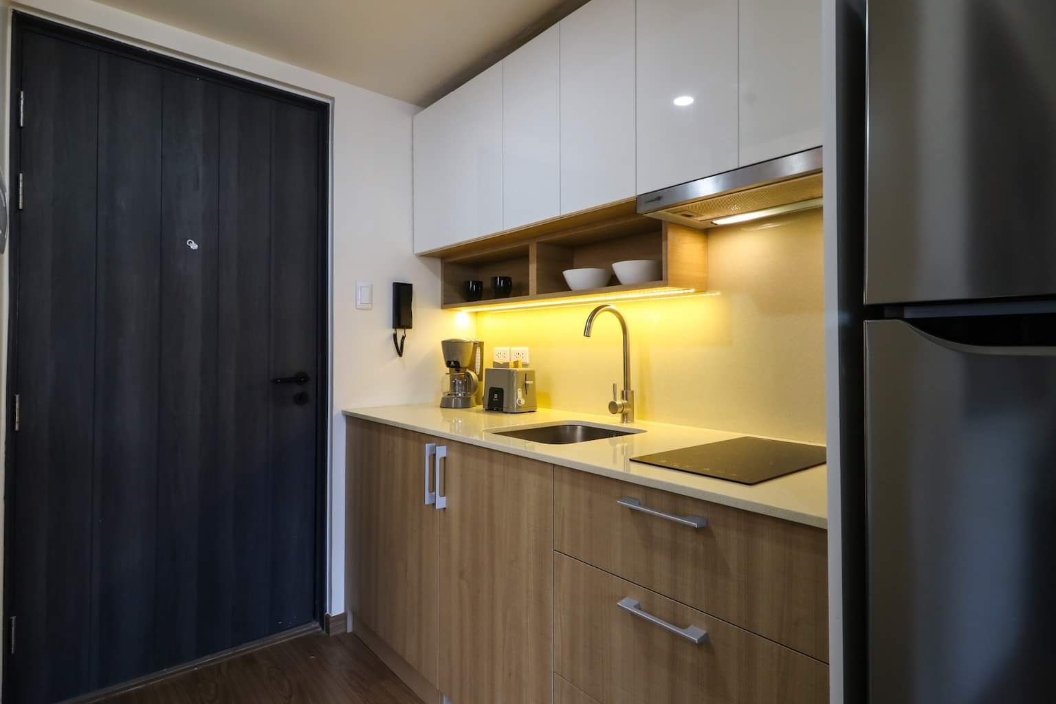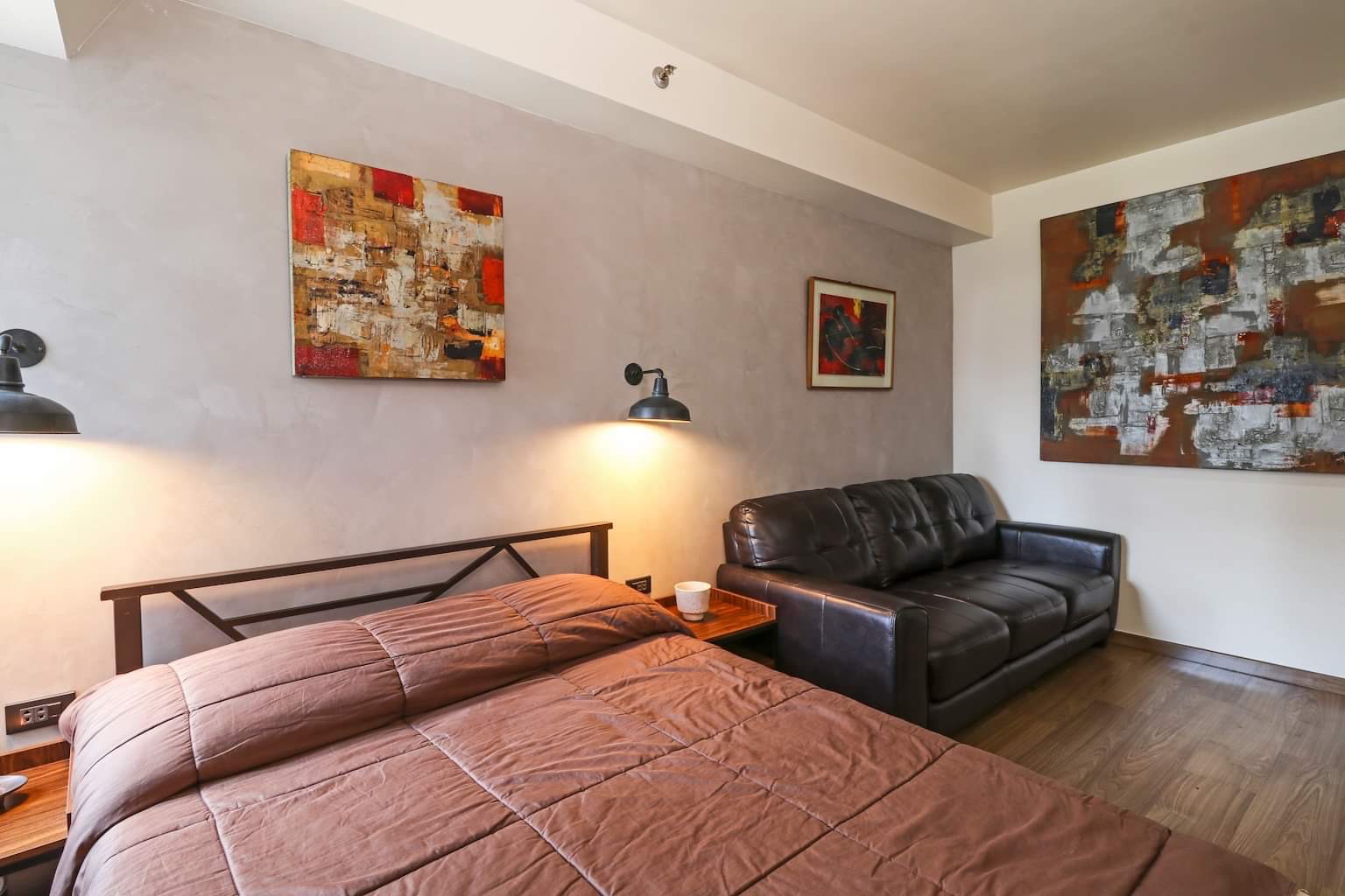 Handsomely designed studio unit at the Rise by Shangrila, Malugay St Makati. Located mid-floor with nice urban view.