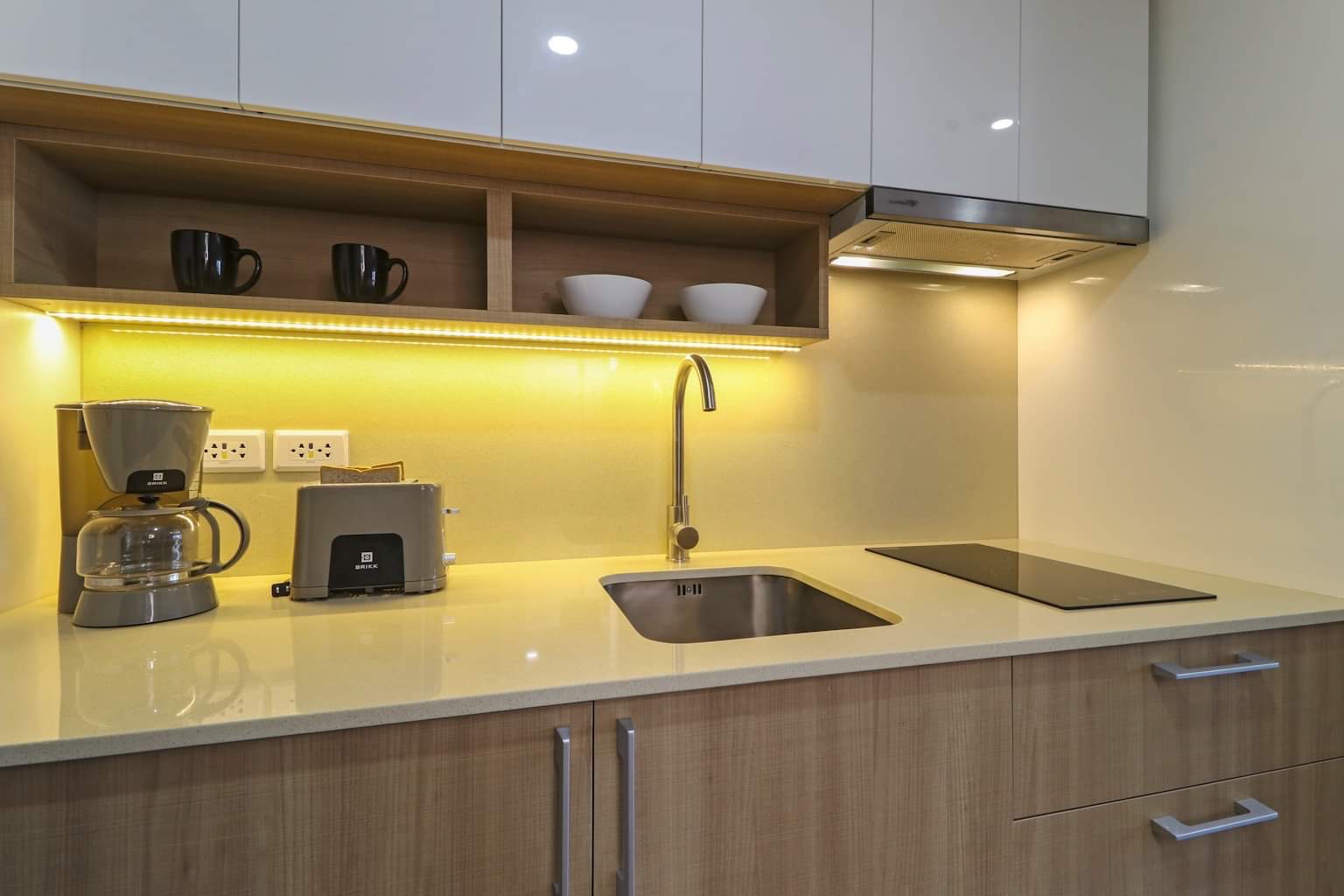 Imported High gloss doors and quartz countertop.